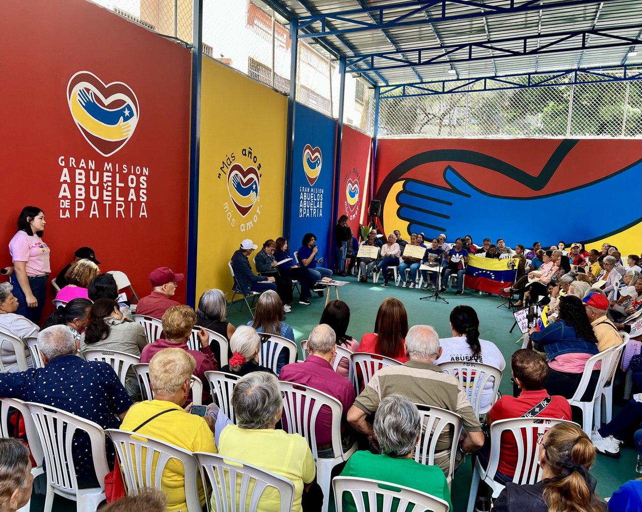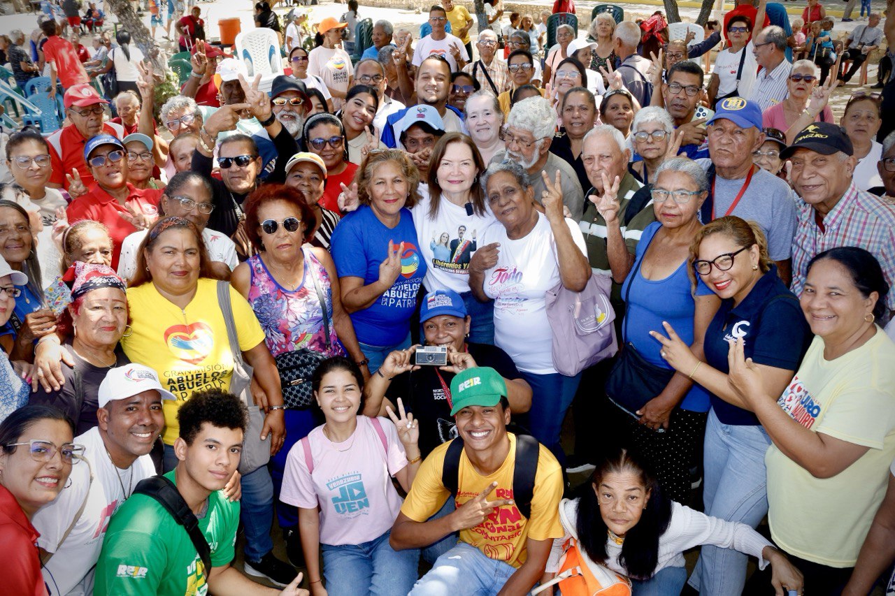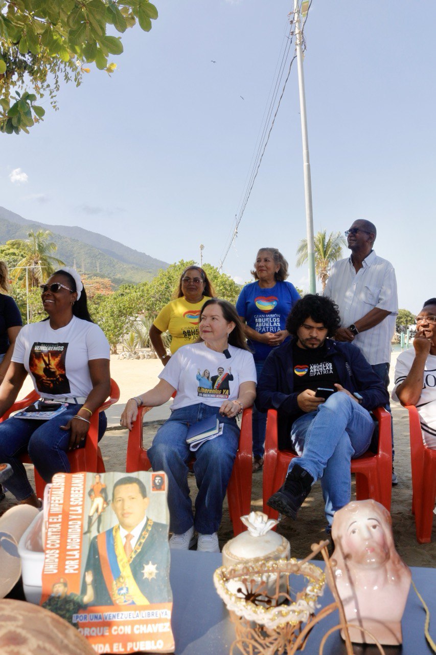 «Estamos hoy aquí en Macuto, en La Guaira, y nos encontramos con estos adultos y adultas mayores, abuelos Patria. Junto a los jóvenes hacemos una actividad intergeneracional, insistiendo en la paz del mundo y por el regreso de nuestro presidente Nicolás Maduro Moros y de su esposa la diputada Cilia Flores de Maduro», expresó Magaly Viña, ministra del Poder Popular para los Adultos Mayores y Abuelos de la Patria.