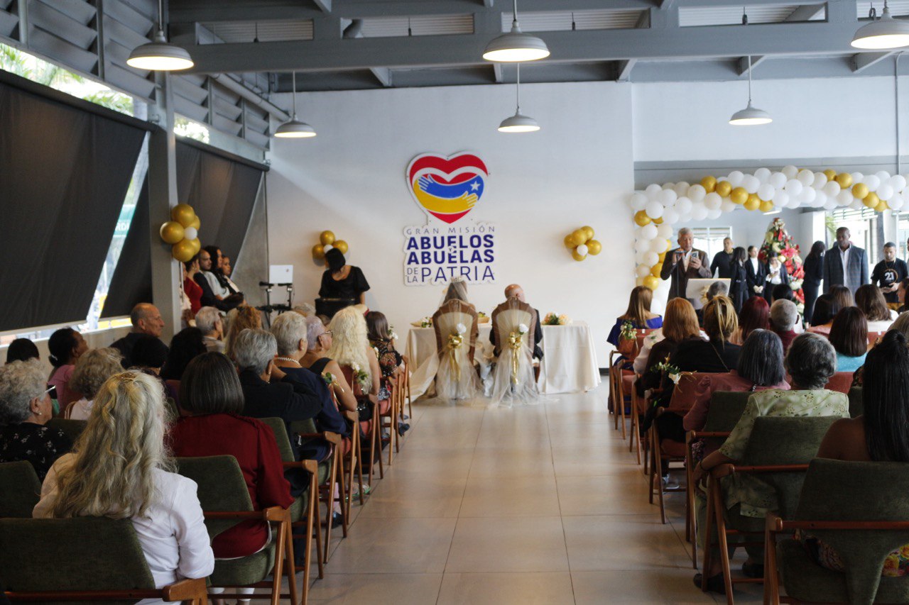 Prensa MinAAMP (Cindy Díaz/13.12.2025).- La tarde noche de este viernes, se realizó por primera vez una boda civil y eclesiástica en la Casa de los Abuelos «Rosa Inés Chávez» ubicada en Caracas, esto como parte de las actividades que promueve la Gran Misión Abuelos y Abuelas de la Patria (GMAPAP), para incentivar el amor como valor esencial que fortalece la paz en el país.